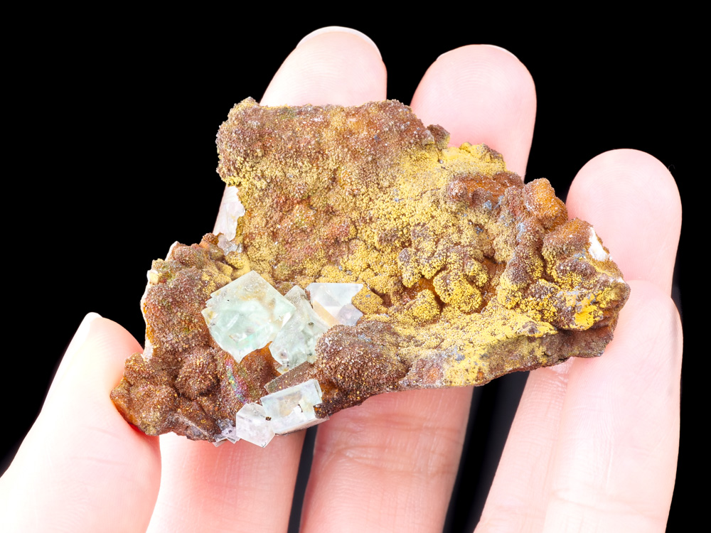 Srostlice zelených krystalů fluoritu z lokality Budžgar. Největší krystal dosahuje velikosti 8 mm. Dobrý stav vzorku z netradiční mongolské lokality.