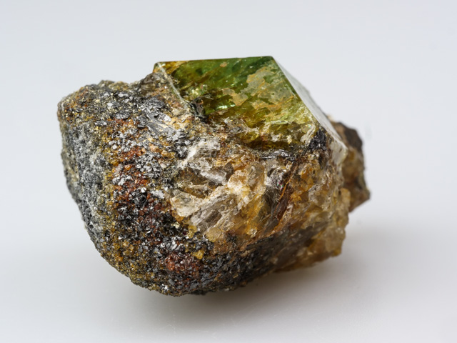 Krystal grossularu na podložce z lokality Rubeho v Tanzánii.