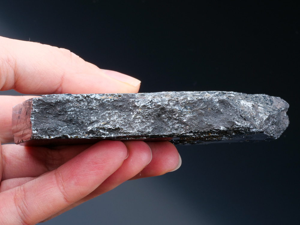 Tabulkovitý, šedočerný, kovově lesklý multikrystal hematitu z lokality Novo Horizonte v Brazílii. . Líbivý velký vzorek!
