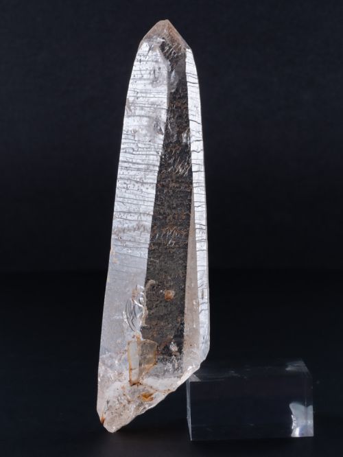 Krásný, velký a čistý krystal křišťálu z lokality Mondo v Tanzánii. Kromě klasických hran klenců (hran ukončení) nalezenete na tomto vzorku i 3 tvarově velmi zajímavé trapezoedry. Jedna hrana prizmatu má na sobě poškození 12x7 mm a hrany mají malá setření. Stav je patrný na fotkách.