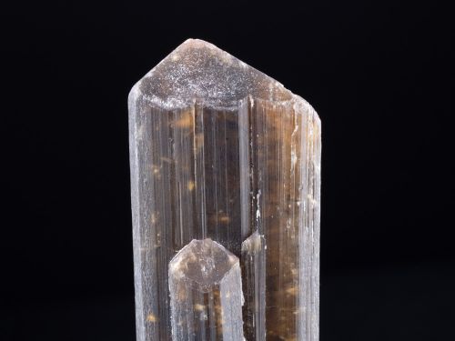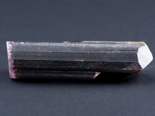 Oboustranně ukončený krystal liddicoatitu z lokality Malkhan v Rusku.
