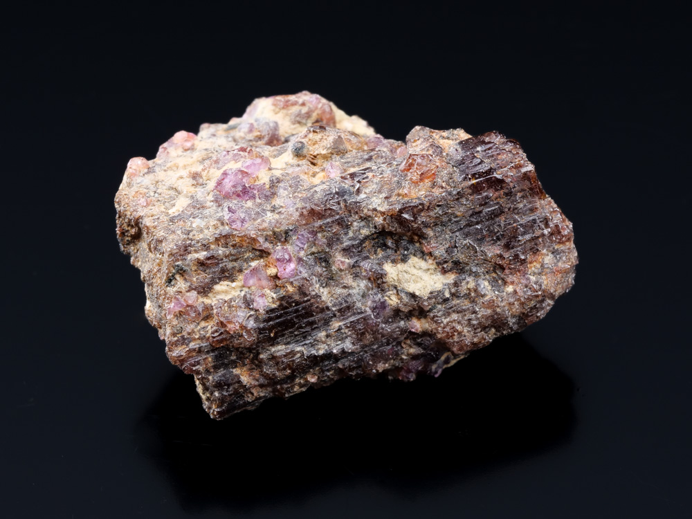 Krystal painitu částečně pokrytý drobnými krystaly rubínu z lokality Ohngaing v Myanmaru.