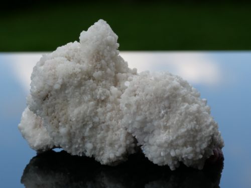 Drobná drúza krystalu rubelitu, které jsou pokryté zeolity bílé barvy. Vzorek je z lokality Malkhan v Rusku.