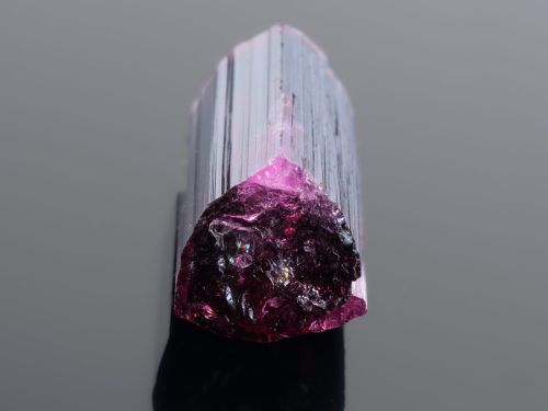 Ukončený krystal sytě rudého turmalínu z lokality Cruzeiro Mine v Brazílii.