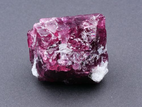 Ukončený krystal spinelu z lokality Mahenge v Tanzánii. Jde o velký sytě rudý krystal v dobrém stavu. Jedna plocha krystalu je kontaktní a kámen má drobné kalcitové nárůsty.