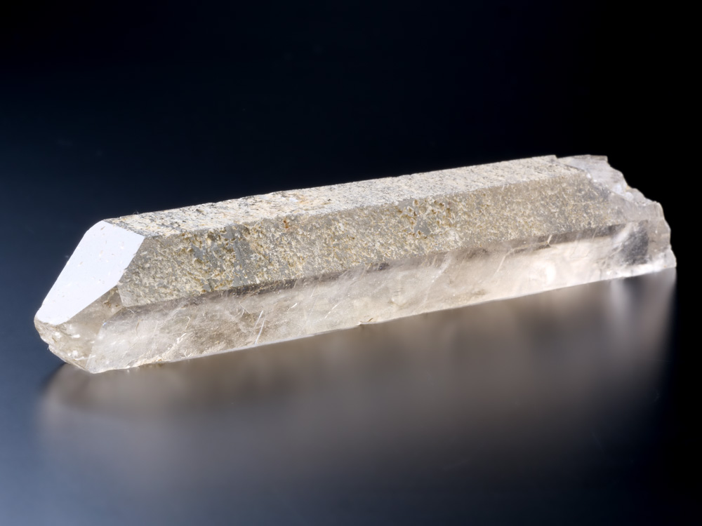 Dlouze sloupečkovitý krystal ukončené záhnědy z mongolské lokality Dzun Bayan. Krystal má bohužel v ukončení poškození 6x6 mm.